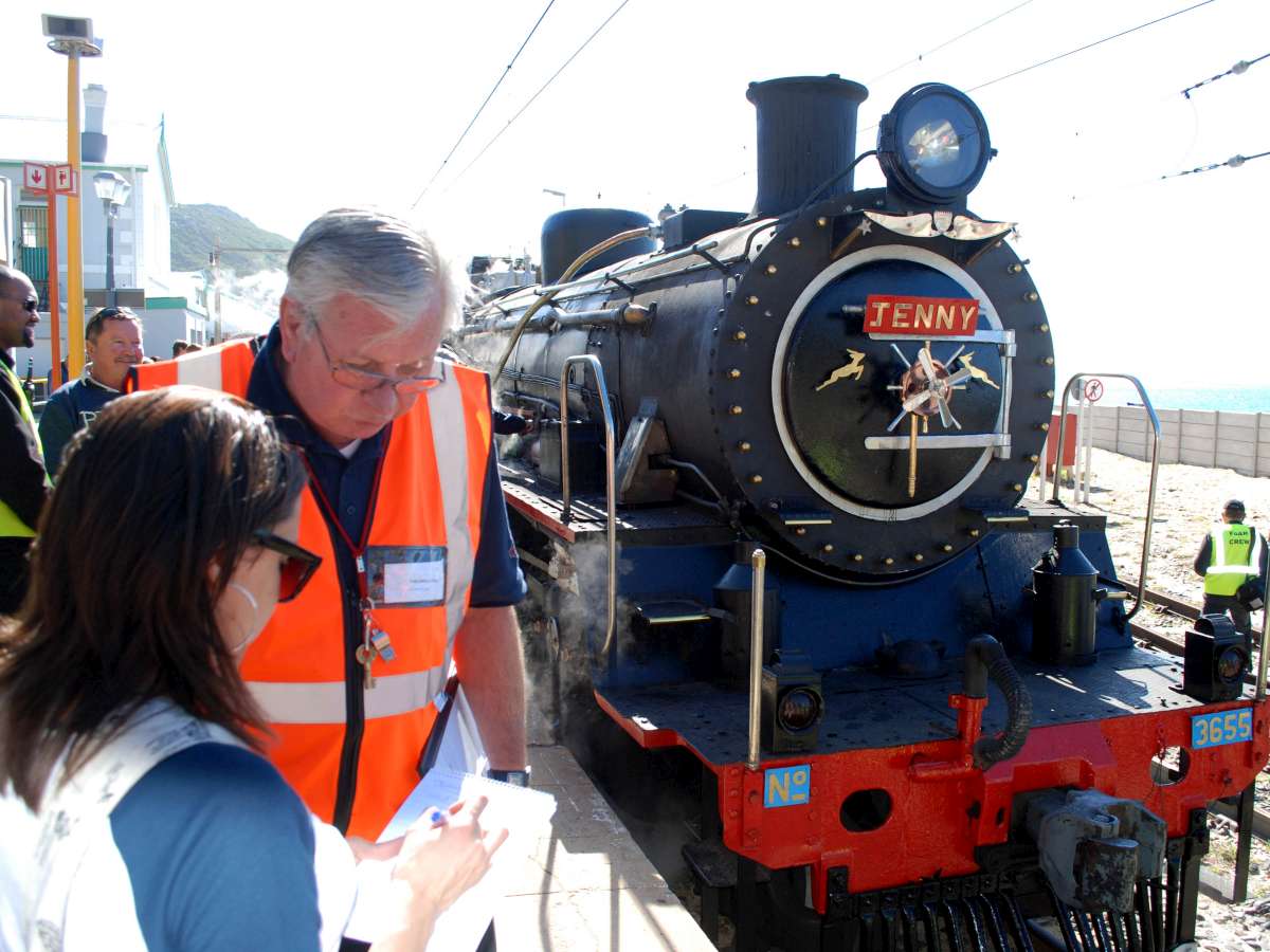 Steam locomotive No 3655 was renamed “Jenny†at a short ceremony at Simonstown station on Sunday 31st July. She was named in honour of railway preservationist Jenny Pretorius, who died earlier in the month.