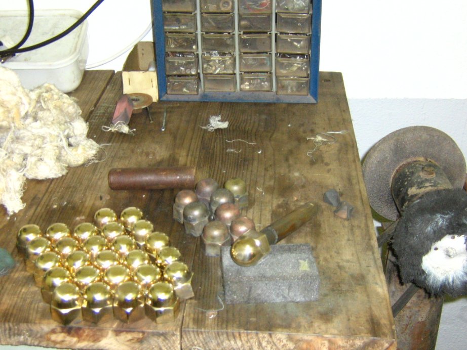- Just a few more to go! See the difference. The ones on the right, that was what they looked like after lying for 2 weeks in a mild vinegar acidic bath, just to remove the excess ingrain dirt and splashes of smokebox old graphite paint! With a bit of soft coaxing scouring block to remove the last of the ingrain dirt, and after about 20 minutes on the buff, and results are noticeable! Almost ready for fitting to 3117! The smokebox nut washers that fit under the nuts still need to be completed, but won't be that shiny as most of the washer/s will be hidden under the smokebox nut!