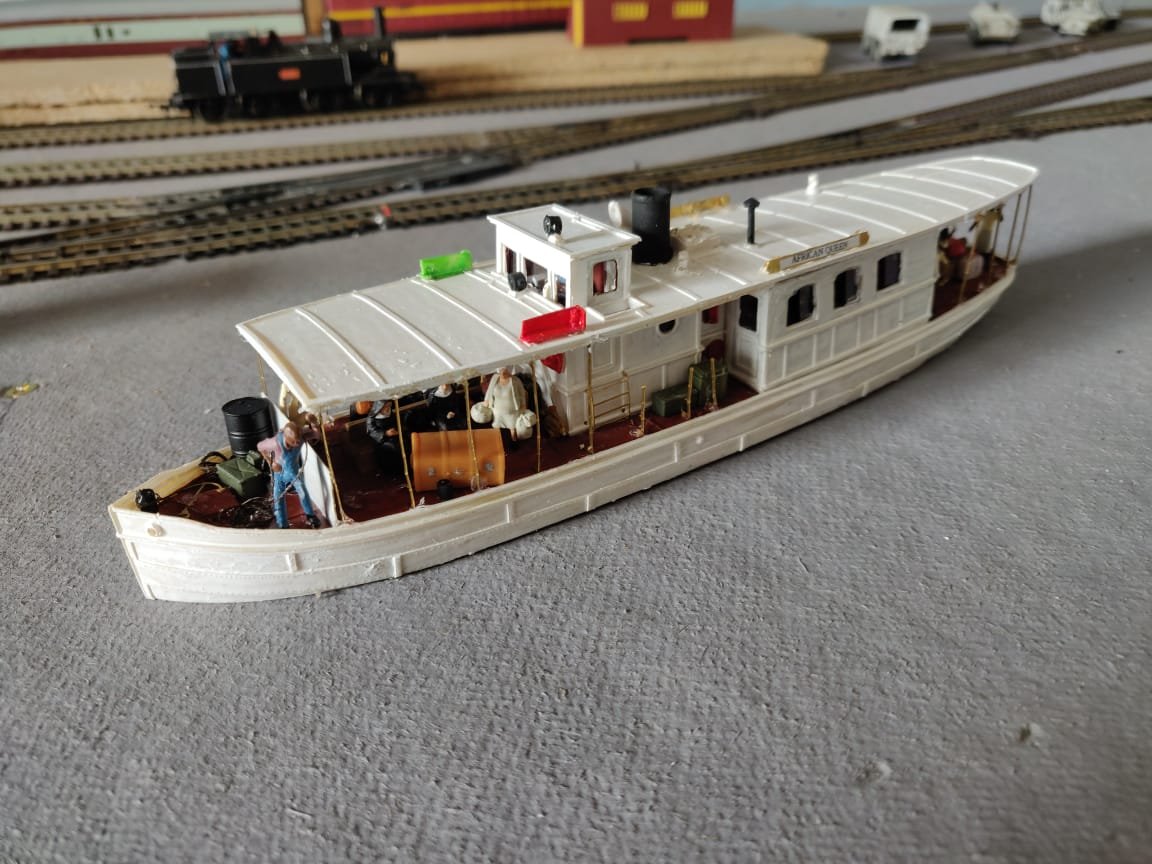 Haven't built the river or lake yet, but I have built the riverboat, a kit from Artitec which I picked up in the Netherlands one day when I had a 12-hour layover at Schipol airport so I got a train out to a Dutch model railway shop.