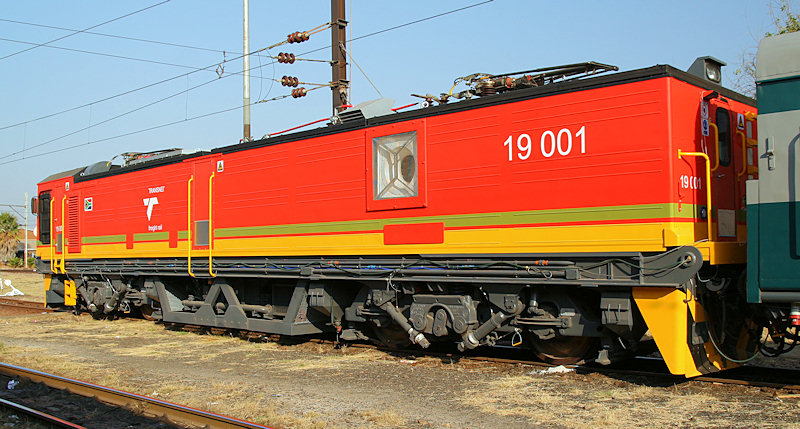 The 19E is still on test from Pyramid South, and will be for a while to come. At the moment she is testing between Hammanskraal and Pienaarsrivier. The consist is 3 diesel locos, 2 test cars and the electric. At the moment she is being tested against the braking power of the diesels. I managed to hop on board the loco today while halted at Petronella station, and was welcomed into the cab by the testing engineer. It is very comfortable and hi-tech inside. The loco produces 392kn of tractive effort, similar to a 7E. The second loco will be out next month, and will be followed by 130 more locos should tests be successful. All are destined for the coal line, running from the DC yards at Ogies/Broodsyersplaas deirect to Richards Bay AC, the locos being dual-voltage.