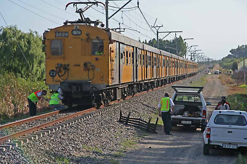 Stumbled upon by Helderberg Railway and Semaphore Association members Dylan Knott and Chris Janisch on 5 January- a fatal accident near Lynedoch on the Stellenbosch line.