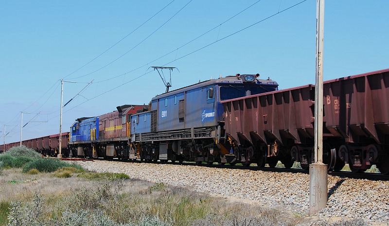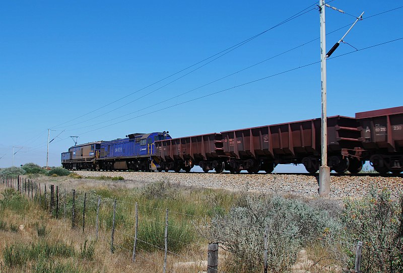 Visited the Iron ore line today on the Saldanha - Elands bay section. We picked up a train of empties leaving Saldanha and chased it until loop 1 (the loops are only numbered no names) where it crossed a loaded train coming down. Chased the empty train the Elands bay and waited hopefully for a loaded train to chase back to Sadanha but this never materalised. I have attached a couple of photos.